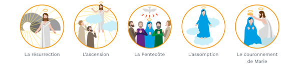 Ces quatre mystères – ajoutés au rosaire initial par Jean Paul II – évoquent la résurrection du Christ.