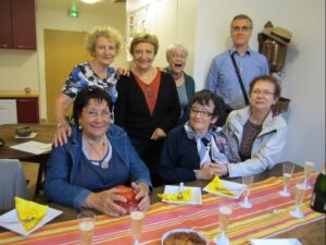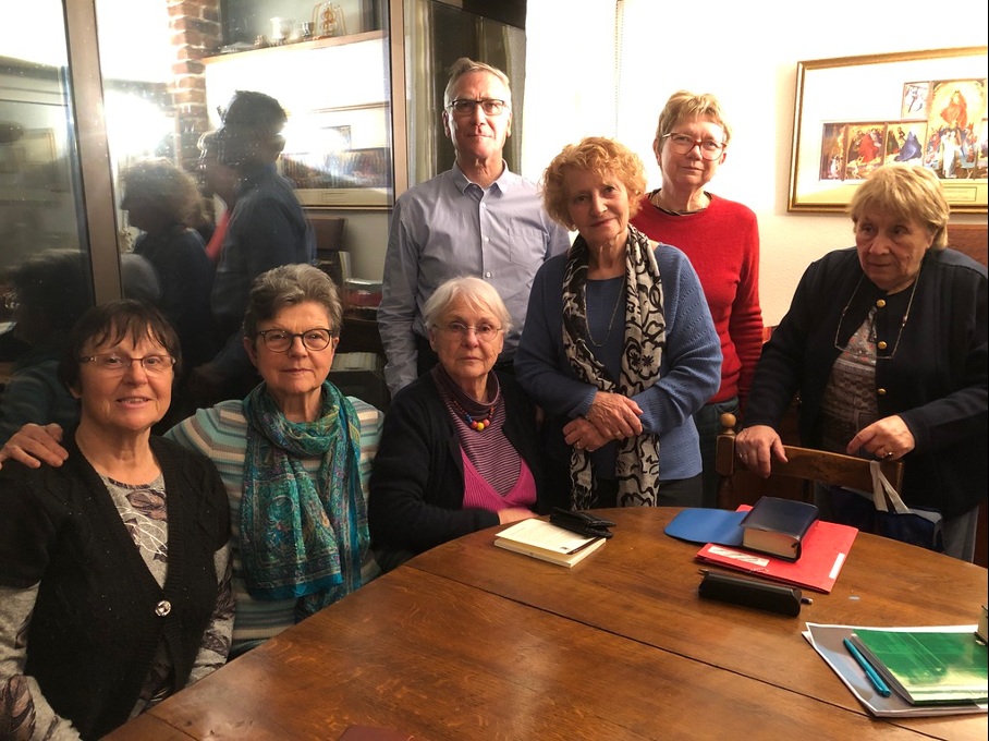 Nous nous rencontrons tous les 15 jours, durant environ deux heures. Pendant de très longues années, c’est Eliane Lambourion qui nous a accueillis chez elle chaleureusement ; depuis sa maladie, puis son décès, j’ai pris le relais, de mon moins mal ! Nous commençons par un temps de prière, en vivant l’office des vêpres, ce qui nous permet aussi de partager nos intentions de prière, que nous porterons les jours suivants dans nos moments de prière personnelle. Une fois sur deux nous travaillons la Règle de st Benoit, dont nous n’avons jamais fini de découvrir les richesses, et l’autre rencontre est consacrée à un partage biblique, ou à la réflexion sur un thème d’actualité ; l’idée est que chacun puisse s’exprimer avec l’écoute respectueuse et bienveillante de tous…Bien sûr, les années nous ont fait travailler nos a priori, nos rugosités, nos réactions ! Il reste toujours du chemin à faire !!