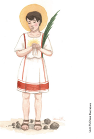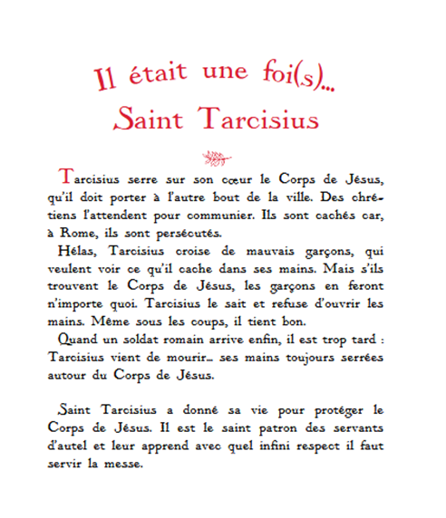 Tarcisius était un jeune garçon, qui assistait les prêtres lors de la célébration de l’Eucharistie. Il était acolyte, nous dirions aujourd’hui servant d’autel.